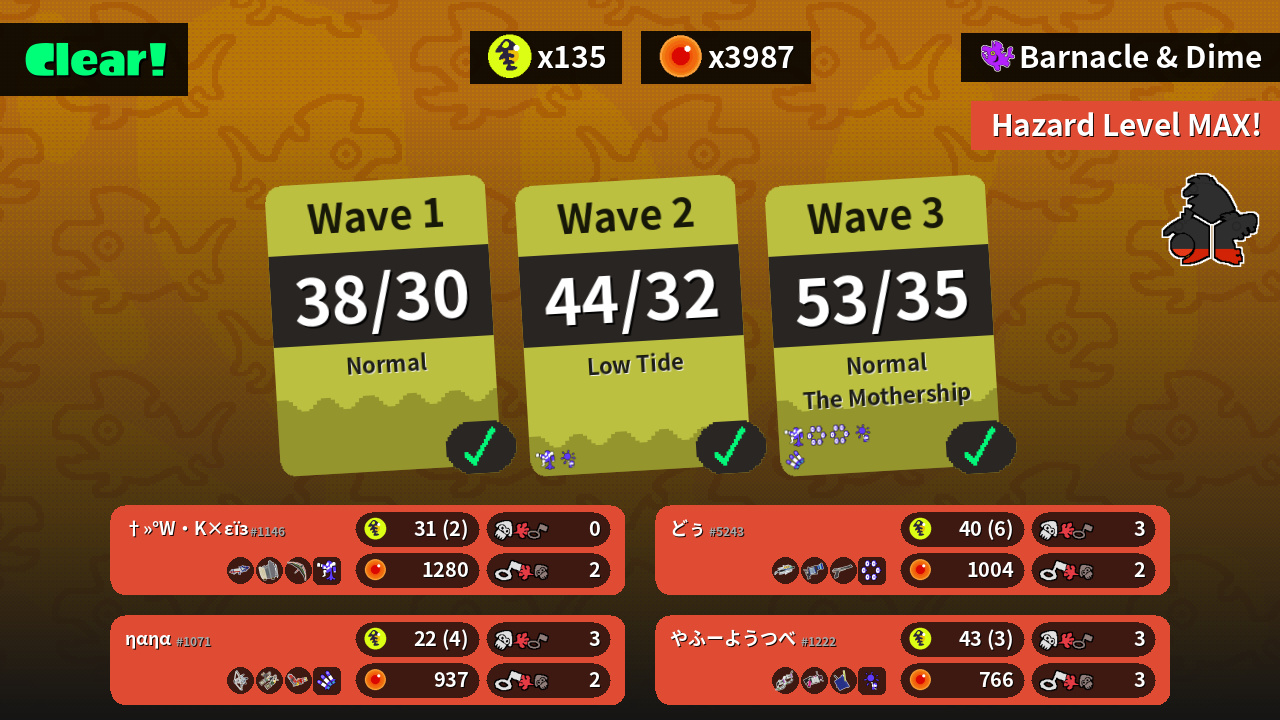 | Boss Salmonid | 15 | 14 | 10 | 17 |