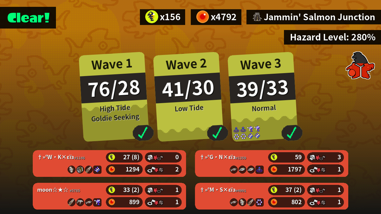 | Weapons | Grizzco Stringer Grizzco Slosher Grizzco Splatana | Grizzco Charger Grizzco Brella Grizzco Brella | Grizzco Charger Grizzco Stringer Grizzco Splatana | Grizzco Splatana Grizzco Roller Grizzco Charger |