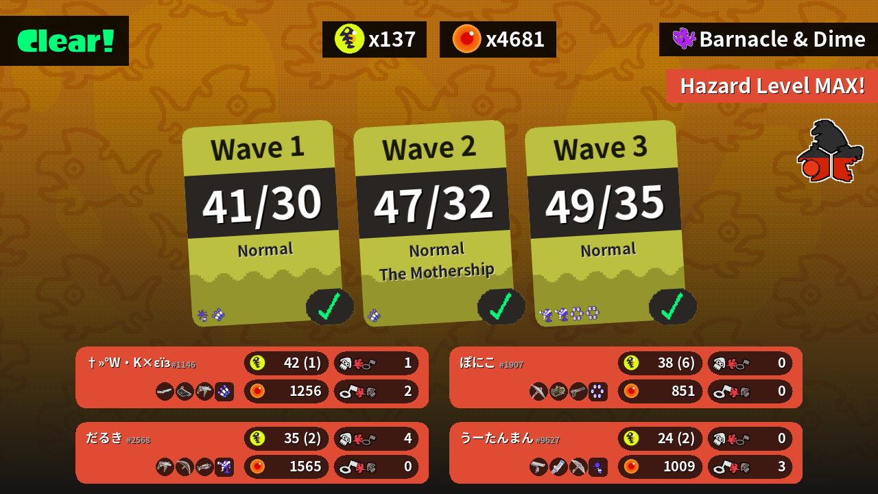 | Weapons | Classic Squiffer Bloblobber Grizzco Roller | Recycled Brella 24 Mk I Explosher N-ZAP '85 | Grizzco Roller Tenta Brella Grizzco Charger | Splat Roller Mint Decavitator Splat Brella |