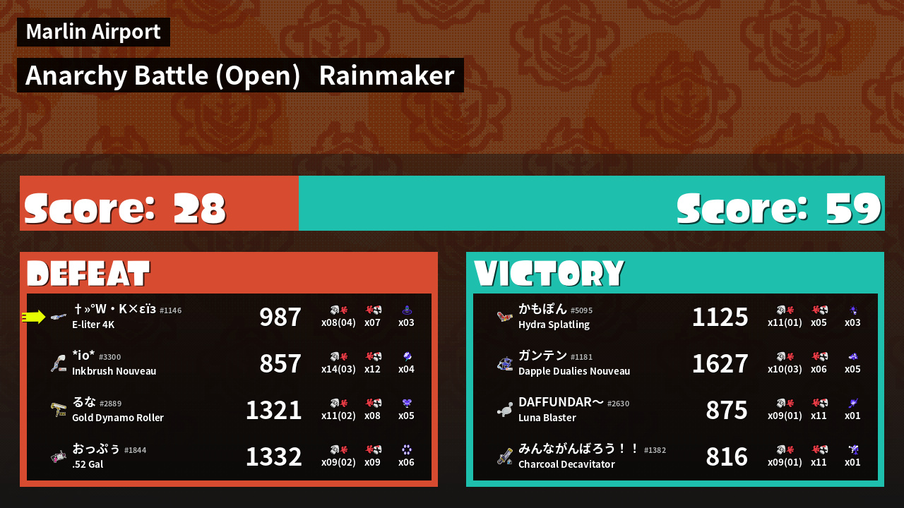 | Mode | Rainmaker - Anarchy Battle (Open) | ||
