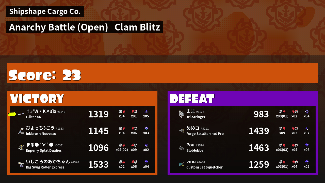 | Mode | Clam Blitz - Anarchy Battle (Open) | ||