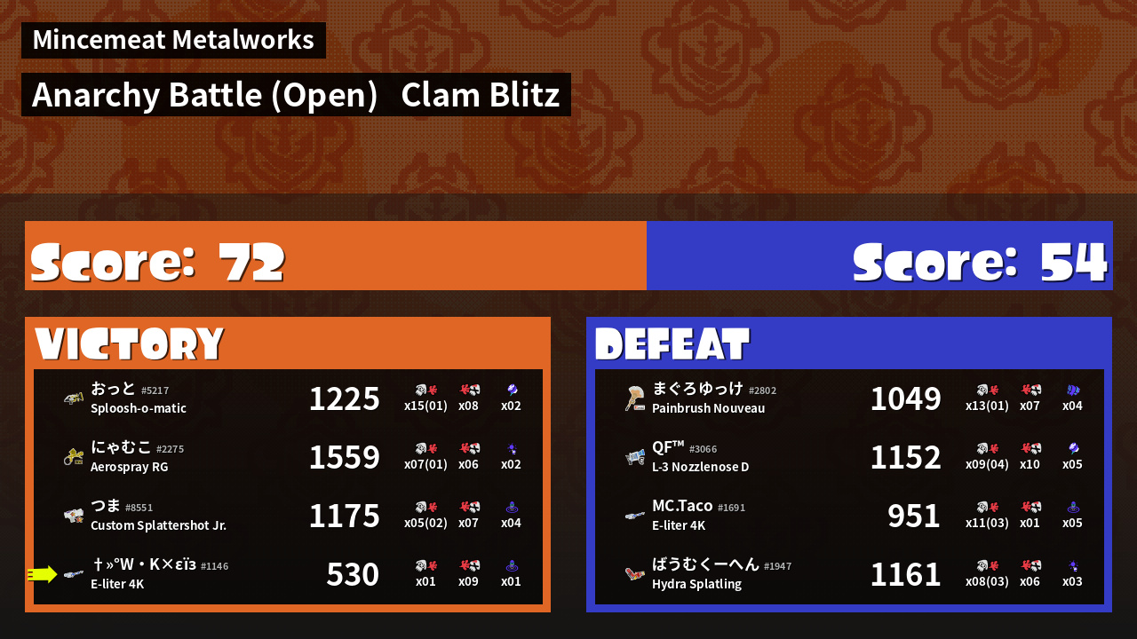 | Mode | Clam Blitz - Anarchy Battle (Open) | ||