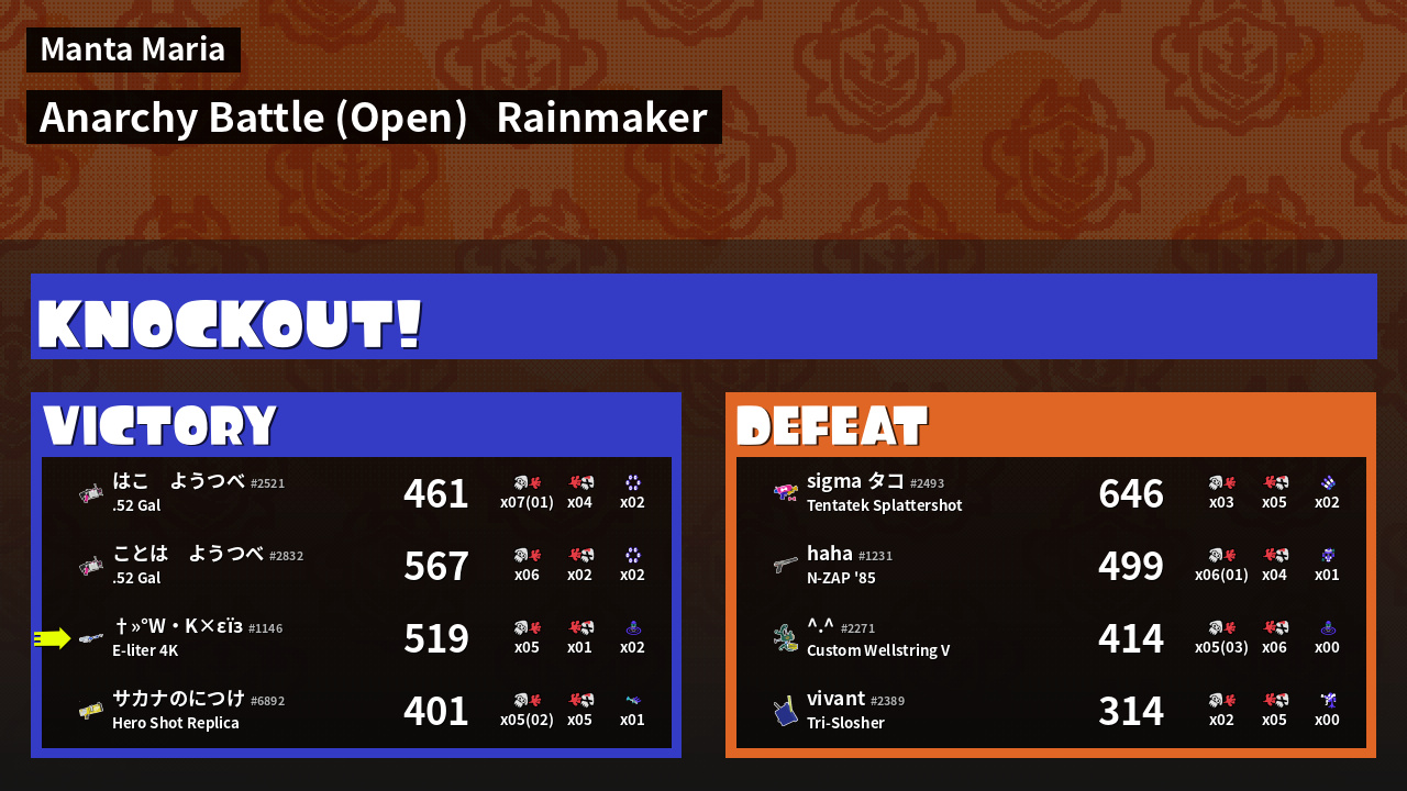 | Mode | Rainmaker - Anarchy Battle (Open) | ||