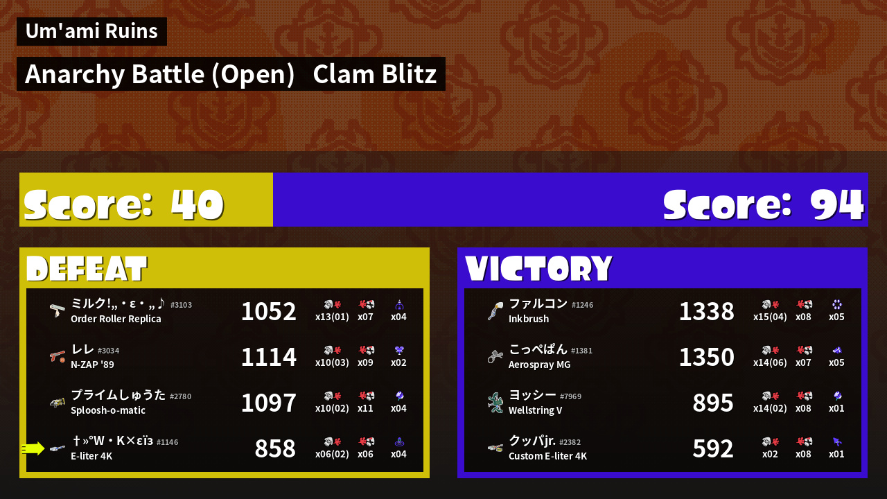 | Mode | Clam Blitz - Anarchy Battle (Open) | ||