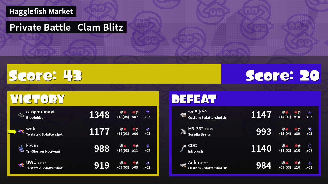 | Mode | Clam Blitz - Private Battle | ||