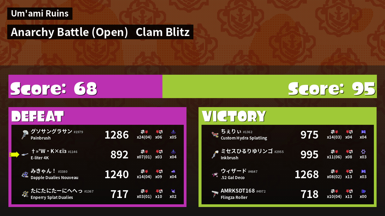 | Mode | Clam Blitz - Anarchy Battle (Open) | ||