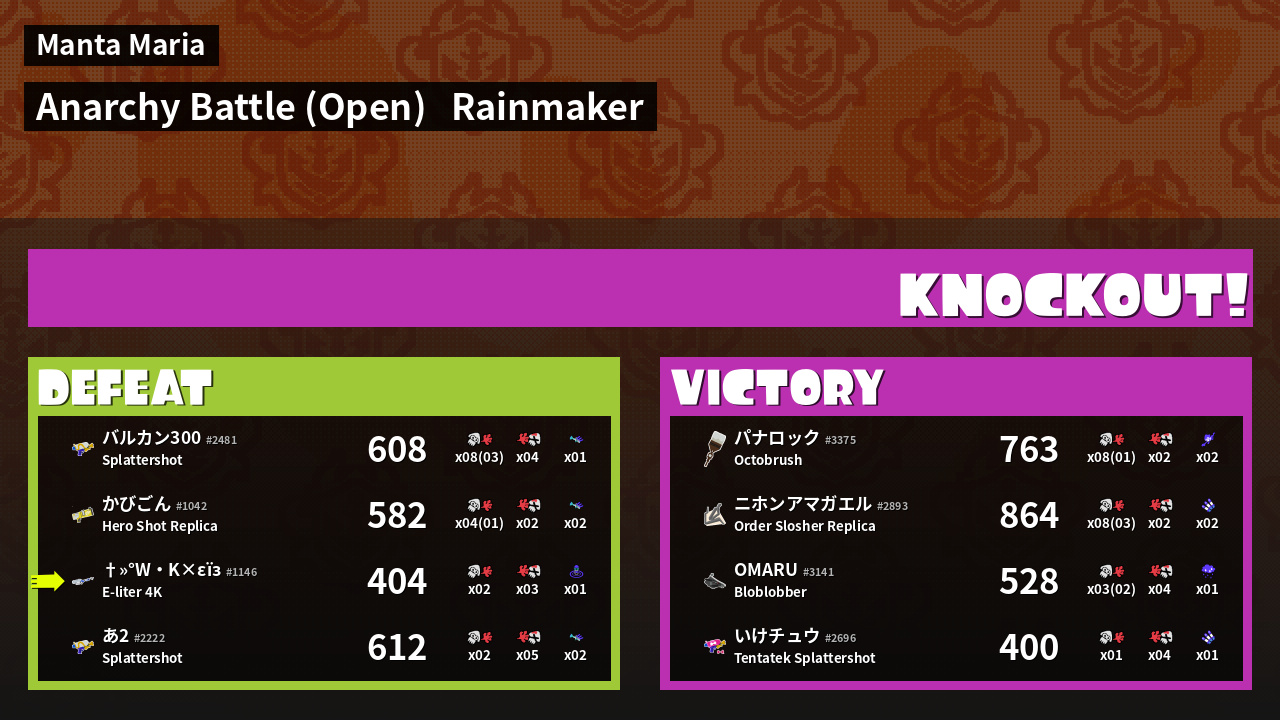 | Mode | Rainmaker - Anarchy Battle (Open) | ||