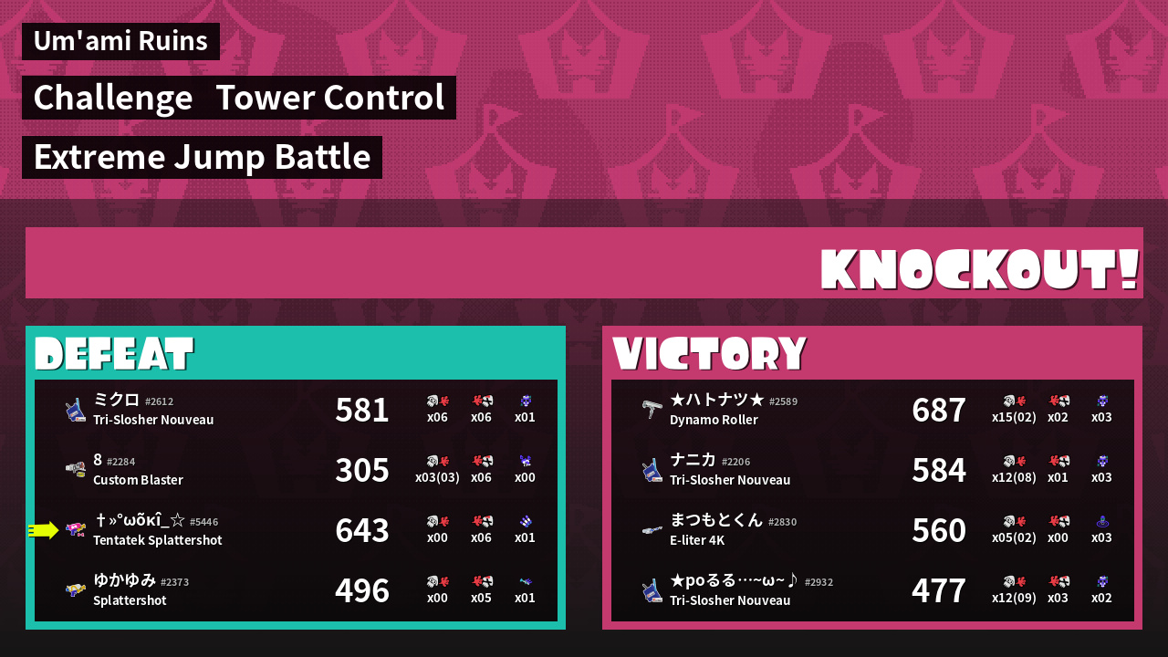 | Weapon | Tentatek Splattershot ( Splat Bomb / Triple Inkstrike) | ||