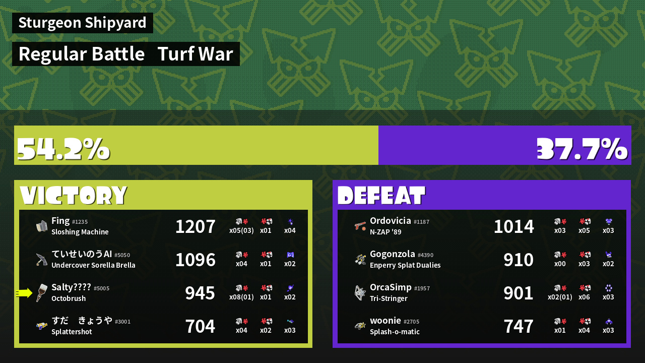 Results of Salty's Battle