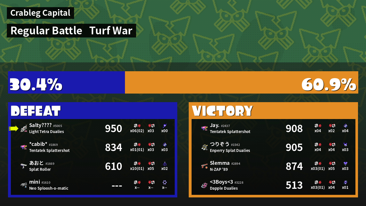 | Mode | Turf War - Regular Battle | ||