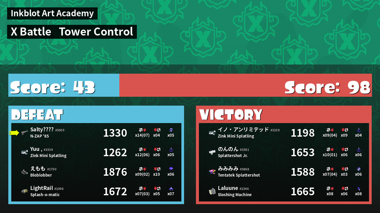 | Medals | #1 Overall Splatter Record-Score Setter #1 Enemy Splatter | ||