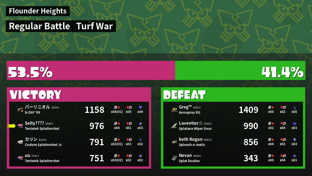 Results of Salty's Battle