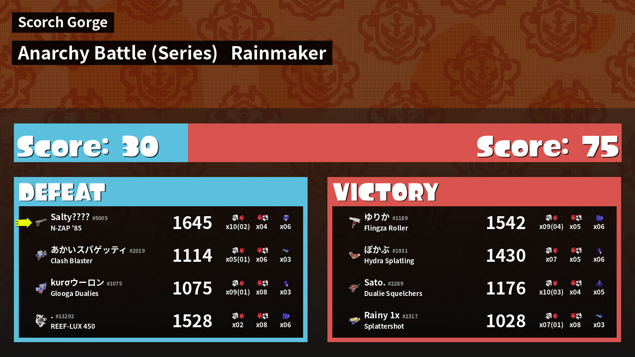 | Mode | Rainmaker - Anarchy Battle (Series) | ||