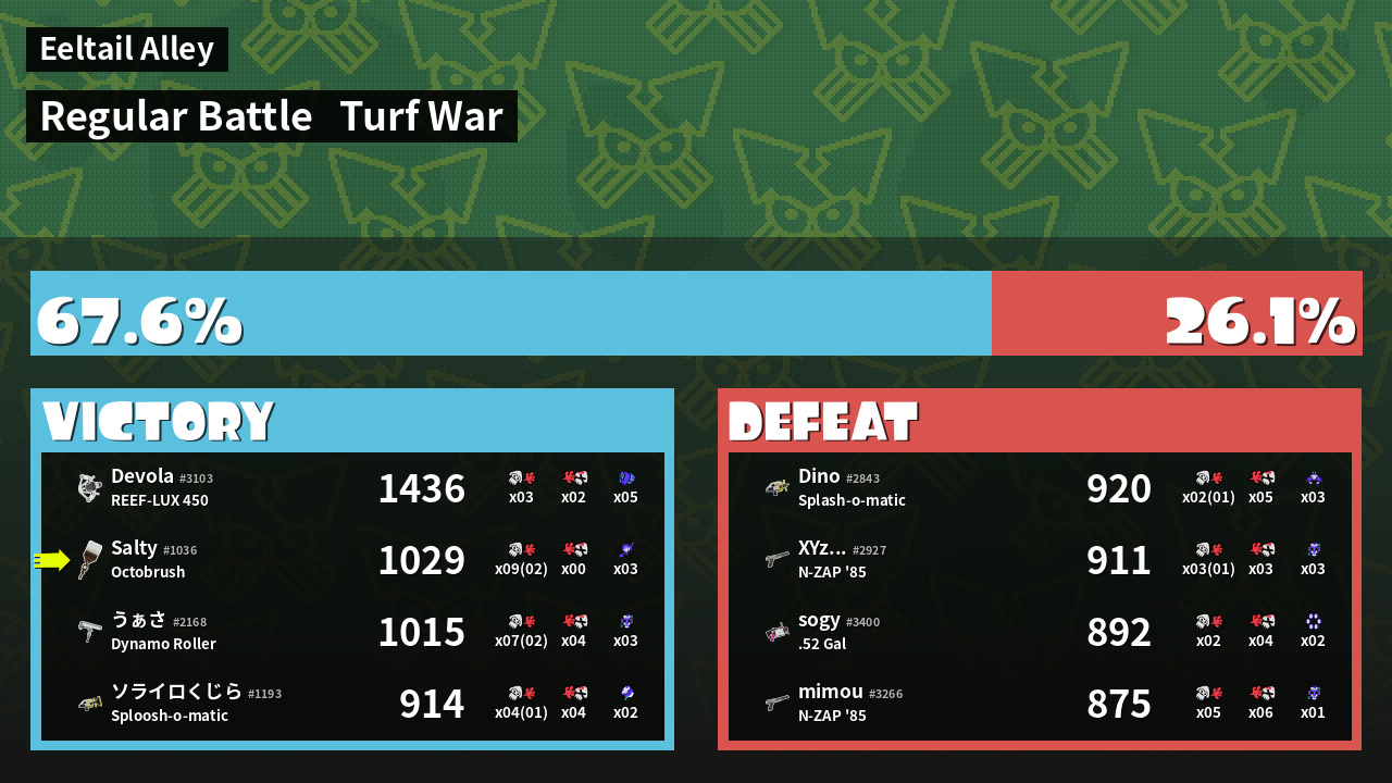 Results of Salty's Battle