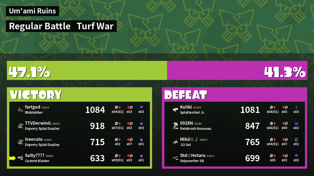 | Medals | #1 Overall Splatter #1 Enemy Splatter #2 Popular Target | ||