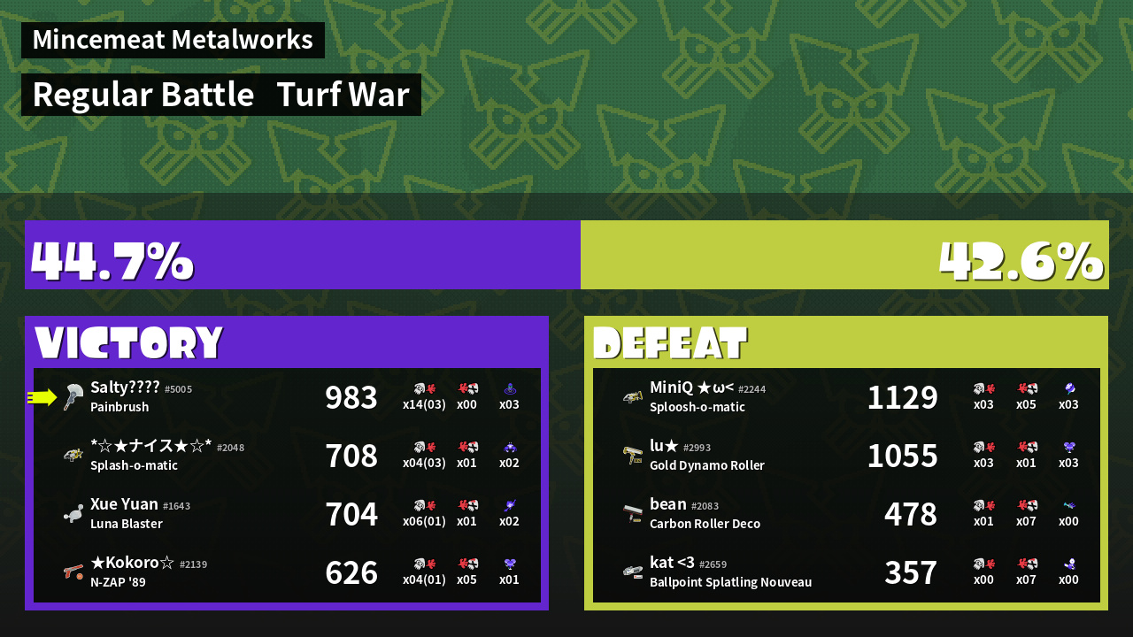 | Mode | Turf War - Regular Battle | ||