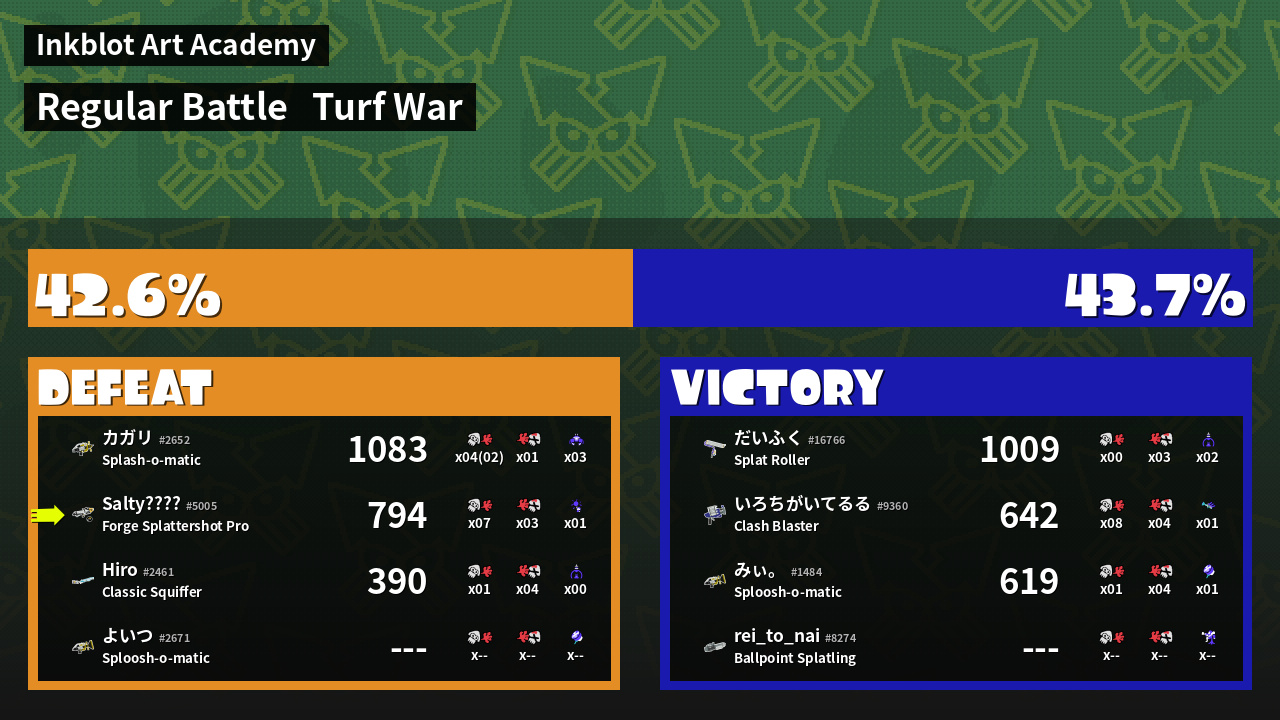 | Medals | #1 Overall Splatter #1 Enemy Splatter #1 Base Defender | ||