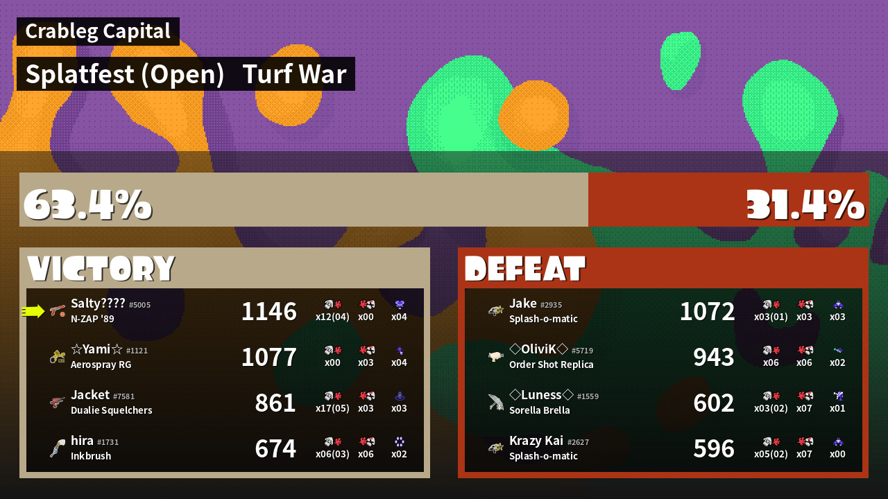 | Medals | #1 Turf Inker #1 Enemy-Base Inker #1 Super Jump Spot | ||