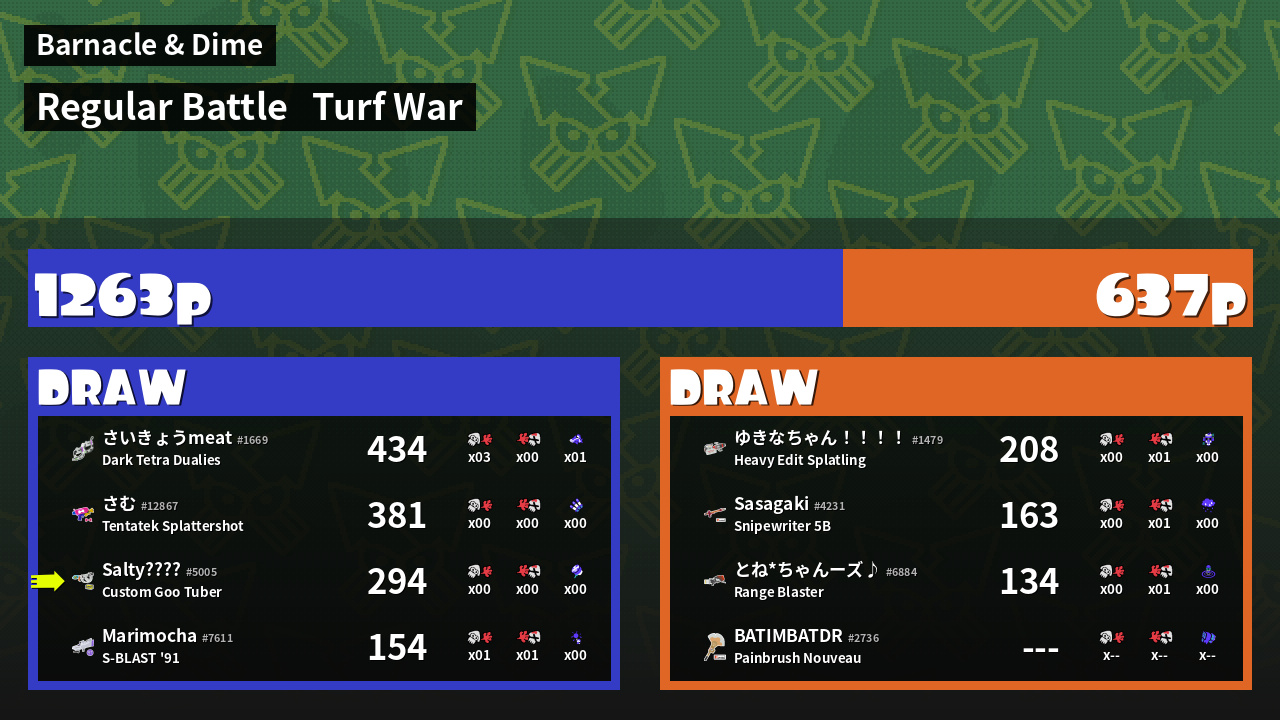 Results of Salty's Battle