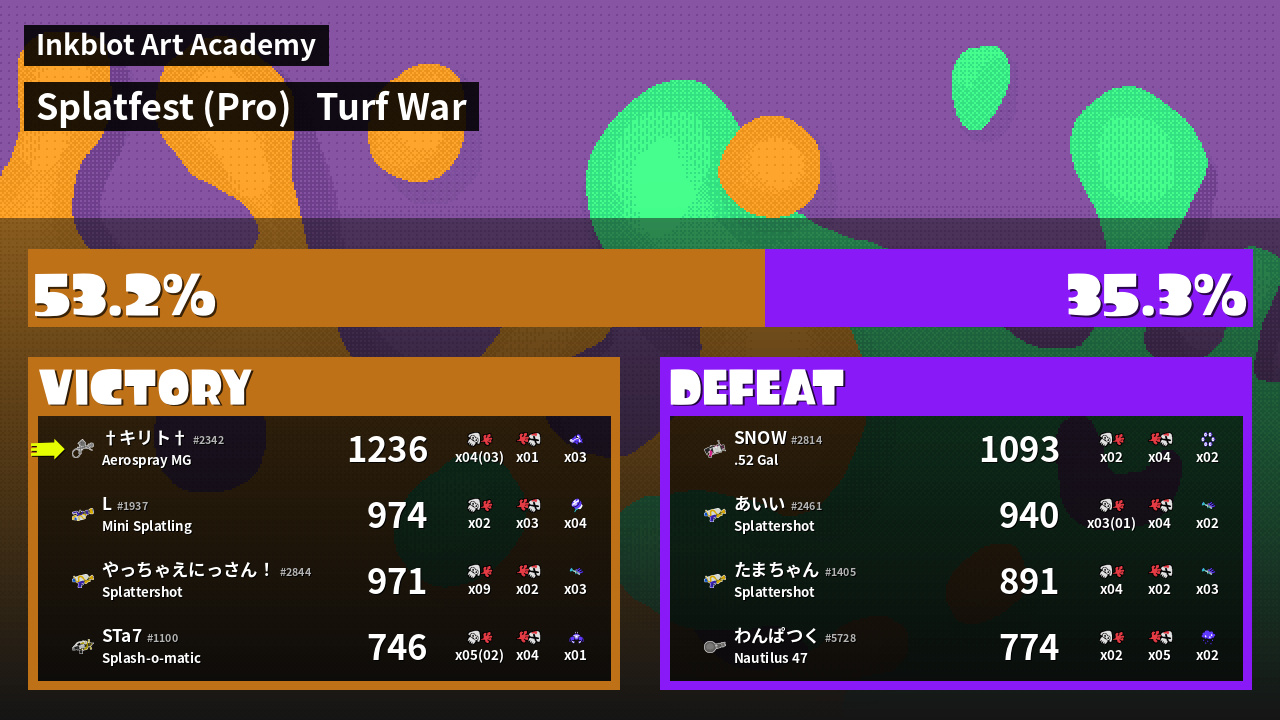| Mode | Turf War - Splatfest (Pro) | ||