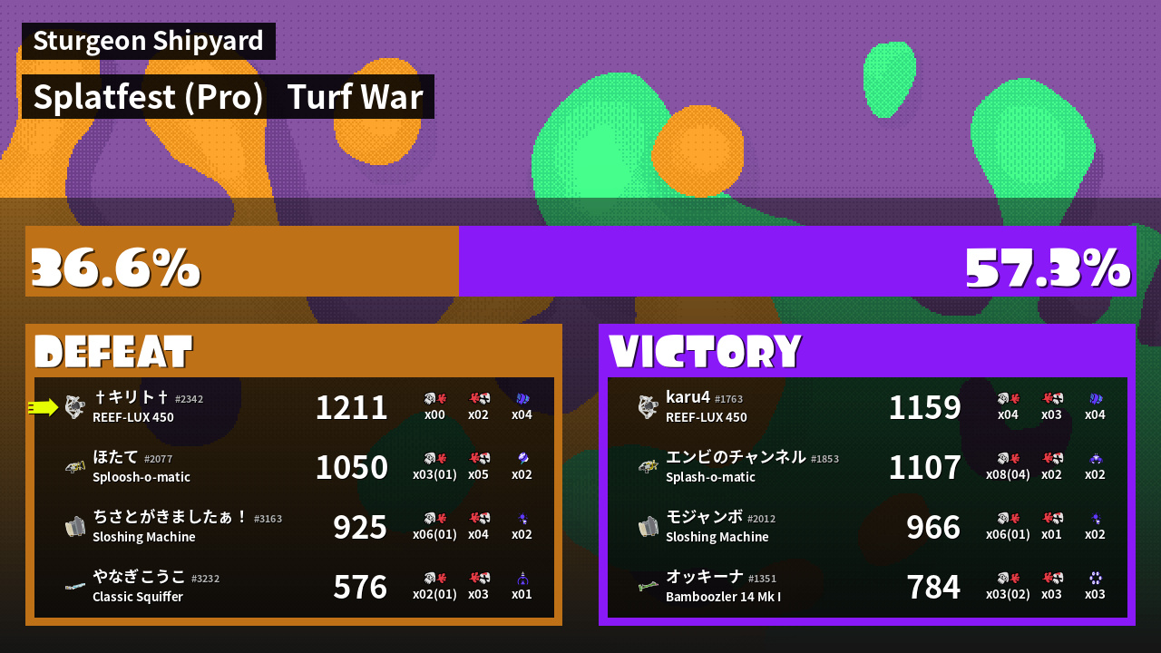 | Mode | Turf War - Splatfest (Pro) | ||