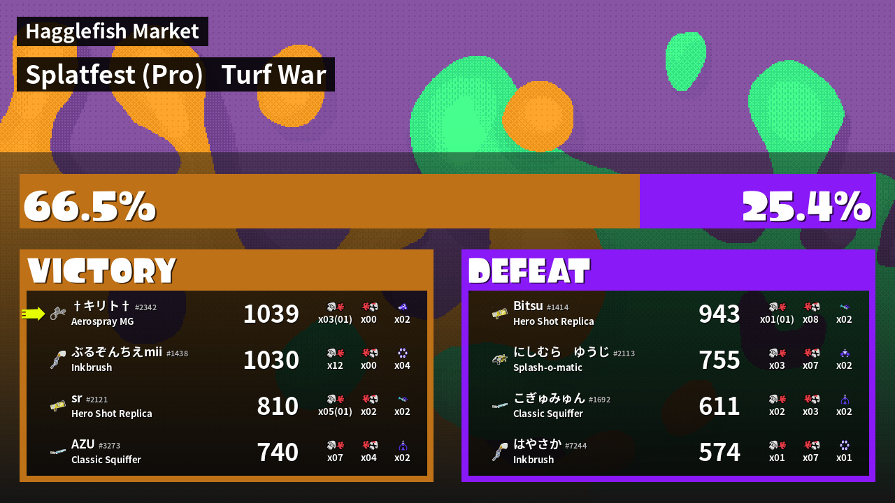 | Medals | #1 Turf Inker #1 Enemy-Base Inker #1 Super Jump Spot | ||