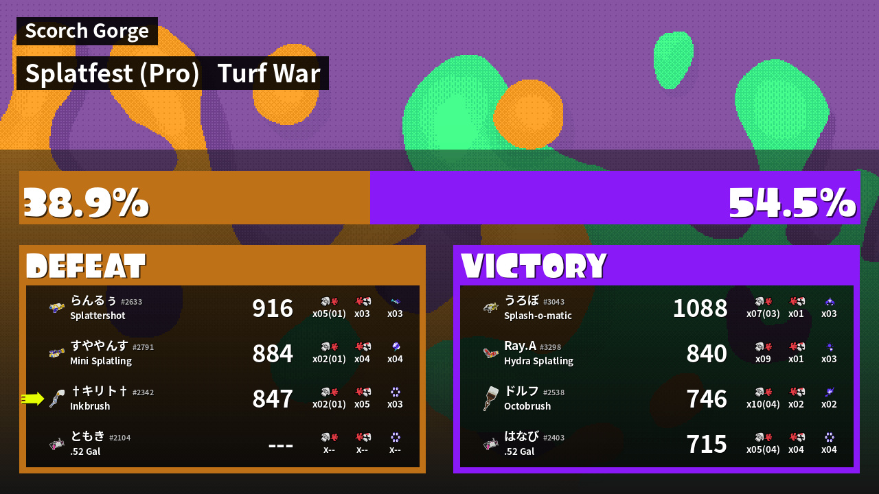 | Mode | Turf War - Splatfest (Pro) | ||