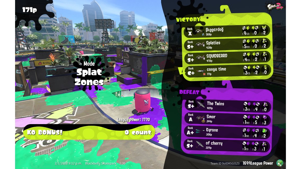 | Mode | Splat Zones - League Battle (Twin) | ||||||||||||||||||||||||||||||||||