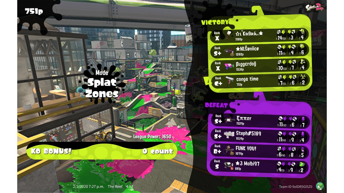 | Mode | Splat Zones - League Battle (Twin) | ||||||||||||||||||||||||||||||||||||||||
