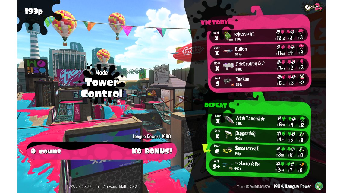 | Mode | Tower Control - League Battle (Twin) | |||||||||||||||||||||||||||||||||||||