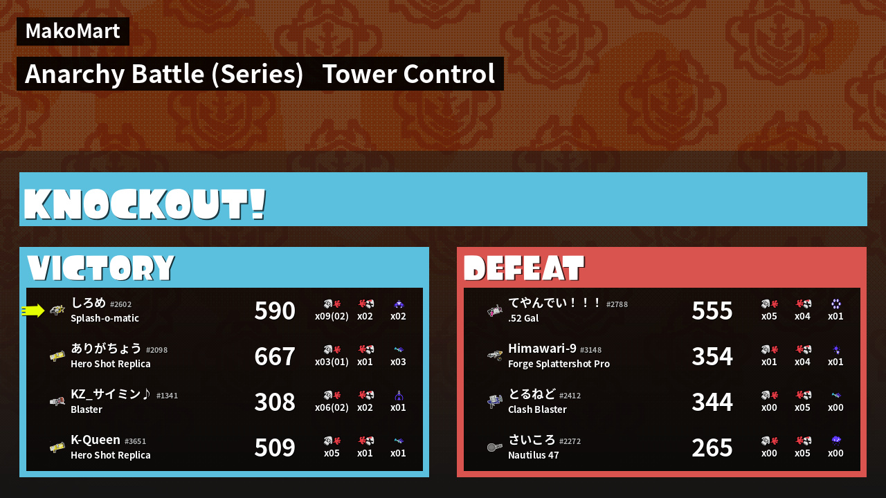 | Medals | #1 Overall Splatter #1 Super Jump Spot #1 Enemy Splatter | ||