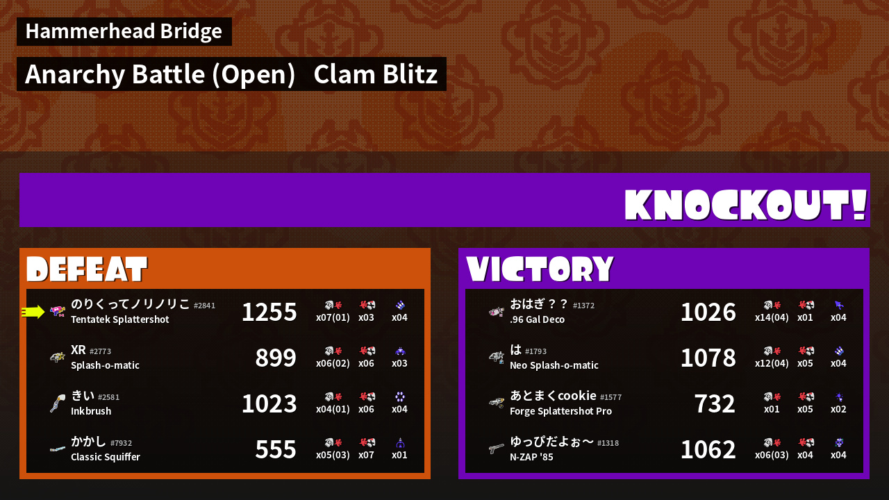 | Mode | Clam Blitz - Anarchy Battle (Open) | ||