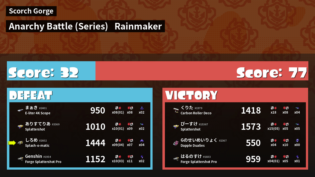 | Medals | #1 Turf Inker #1 Splat Assister #1 Crab Tank User | ||