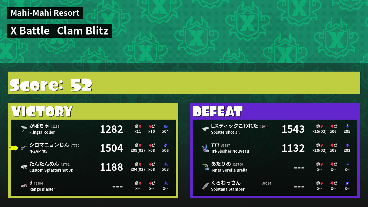 | Mode | Clam Blitz - X Battle | ||