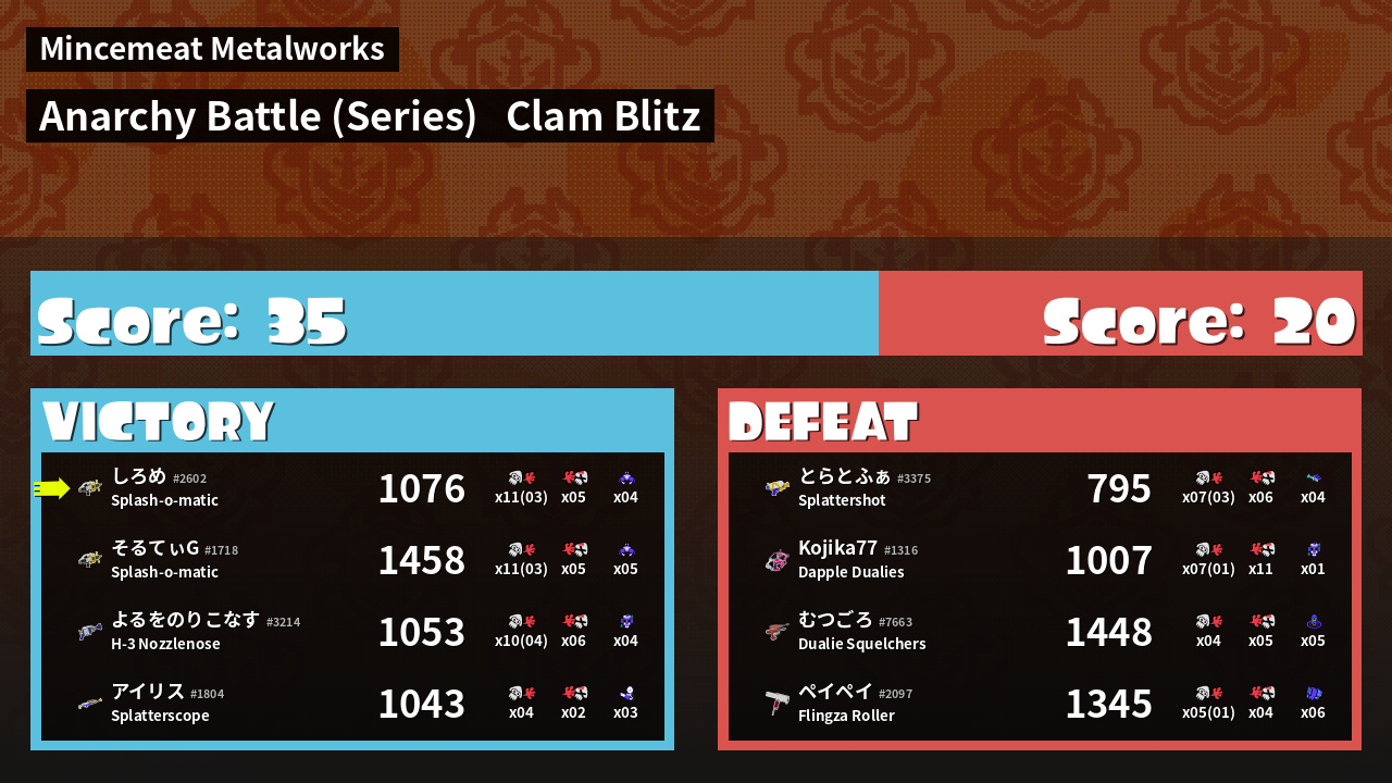 | Mode | Clam Blitz - Anarchy Battle (Series) | ||