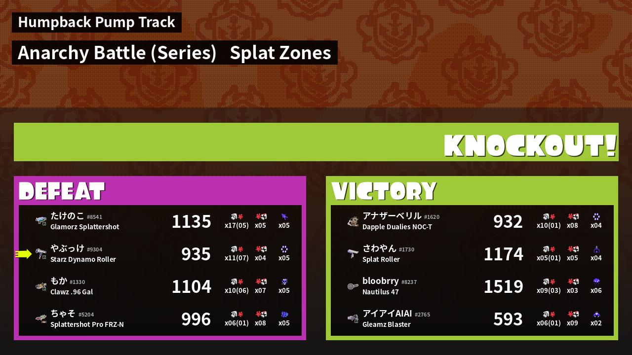 | Mode | Splat Zones - Anarchy Battle (Series) | ||