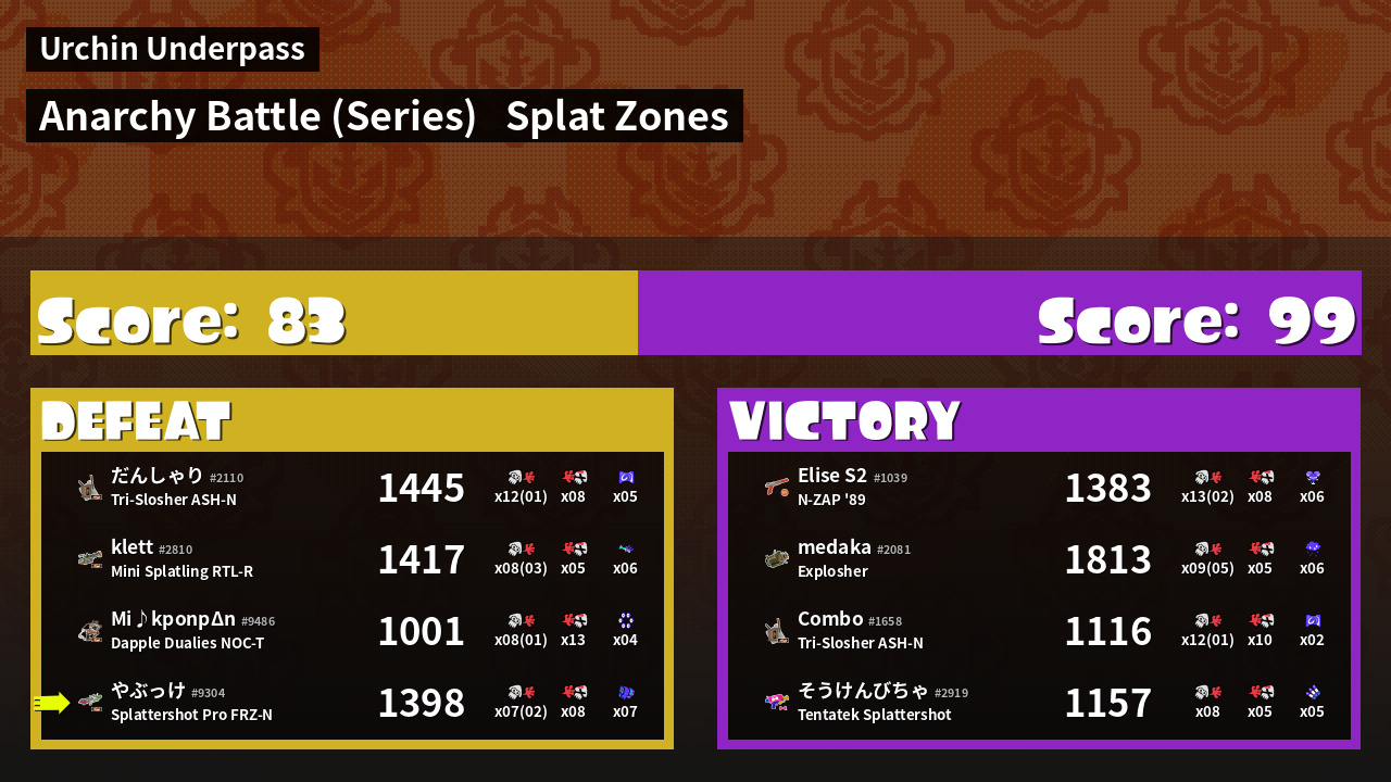 | Mode | Splat Zones - Anarchy Battle (Series) | ||