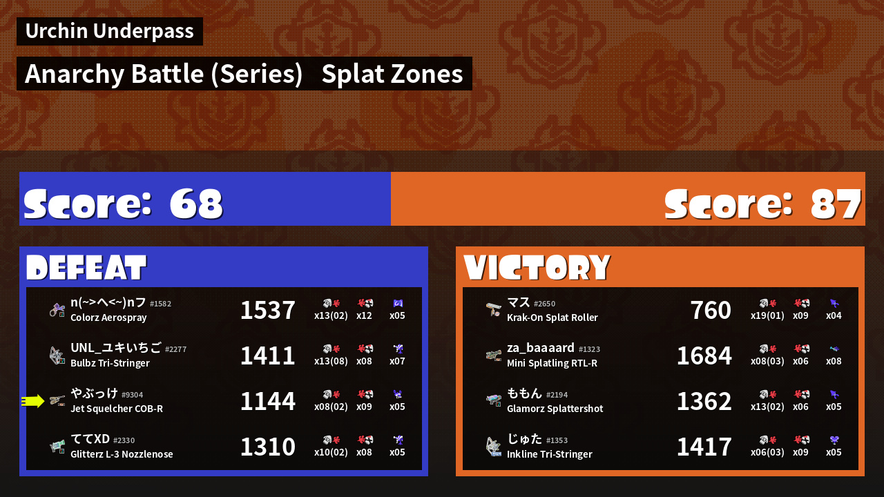| Mode | Splat Zones - Anarchy Battle (Series) | ||
