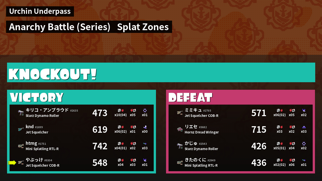 | Mode | Splat Zones - Anarchy Battle (Series) | ||