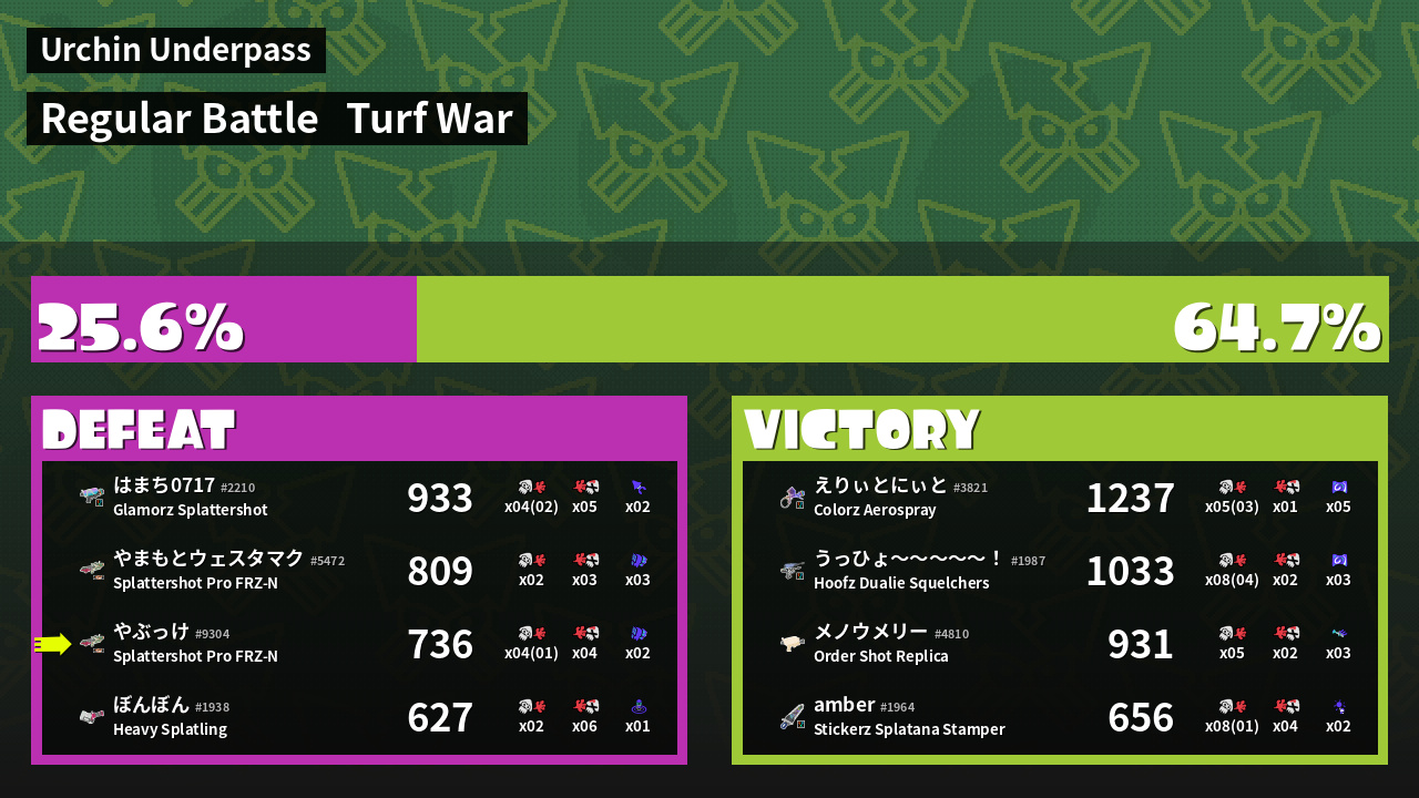 | Medals | #1 Overall Splatter #1 Enemy-Base Inker #1 Enemy Splatter | ||