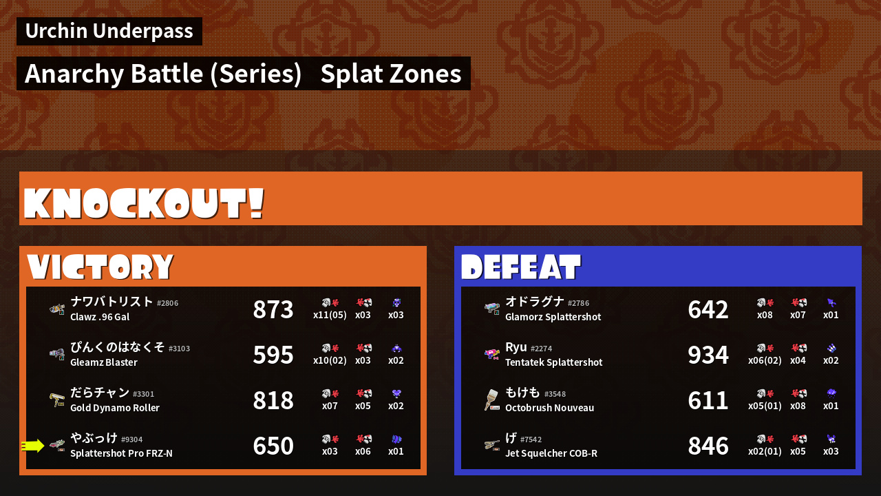 | Mode | Splat Zones - Anarchy Battle (Series) | ||