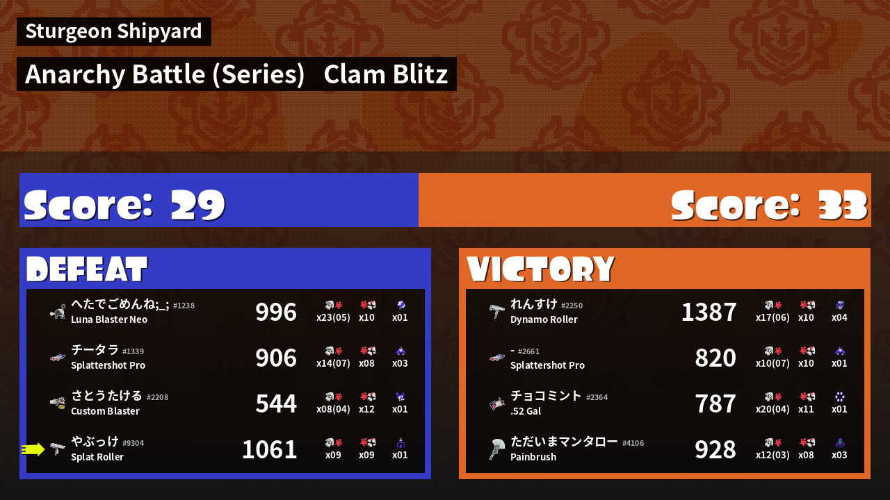 | Mode | Clam Blitz - Anarchy Battle (Series) | ||