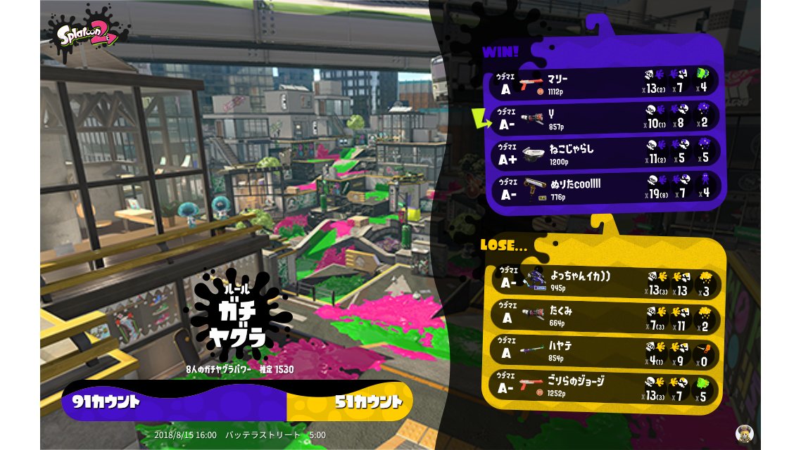 | Name | Weapon | Level | Rank | Inked | k+a/sp | k/d |