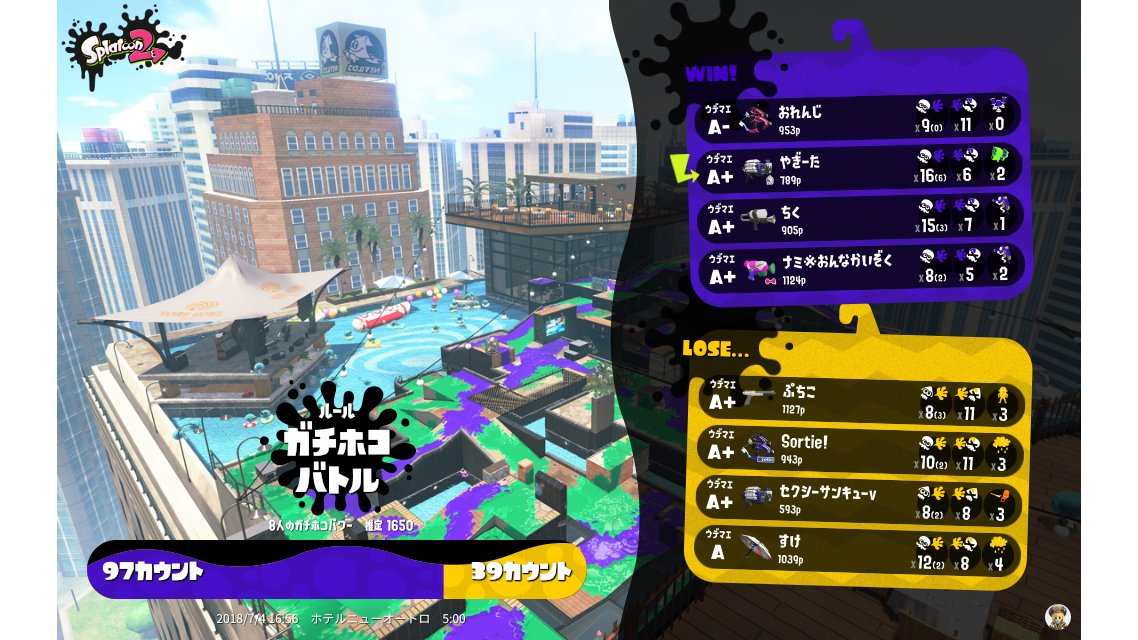 | Name | Weapon | Level | Rank | Inked | k+a/sp | k/d |