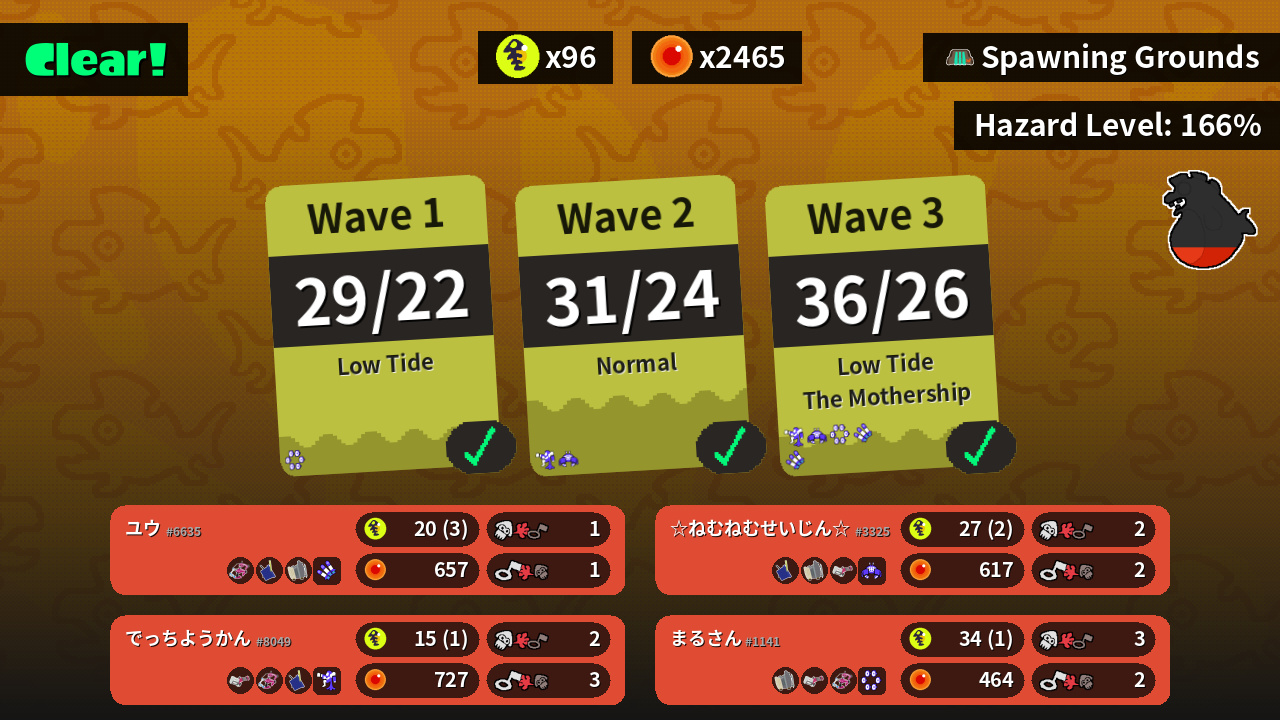 | Weapons | Dapple Dualies Tri-Slosher Sloshing Machine | Sloshing Machine Heavy Splatling Dapple Dualies | Tri-Slosher Sloshing Machine Heavy Splatling | Heavy Splatling Dapple Dualies Tri-Slosher |