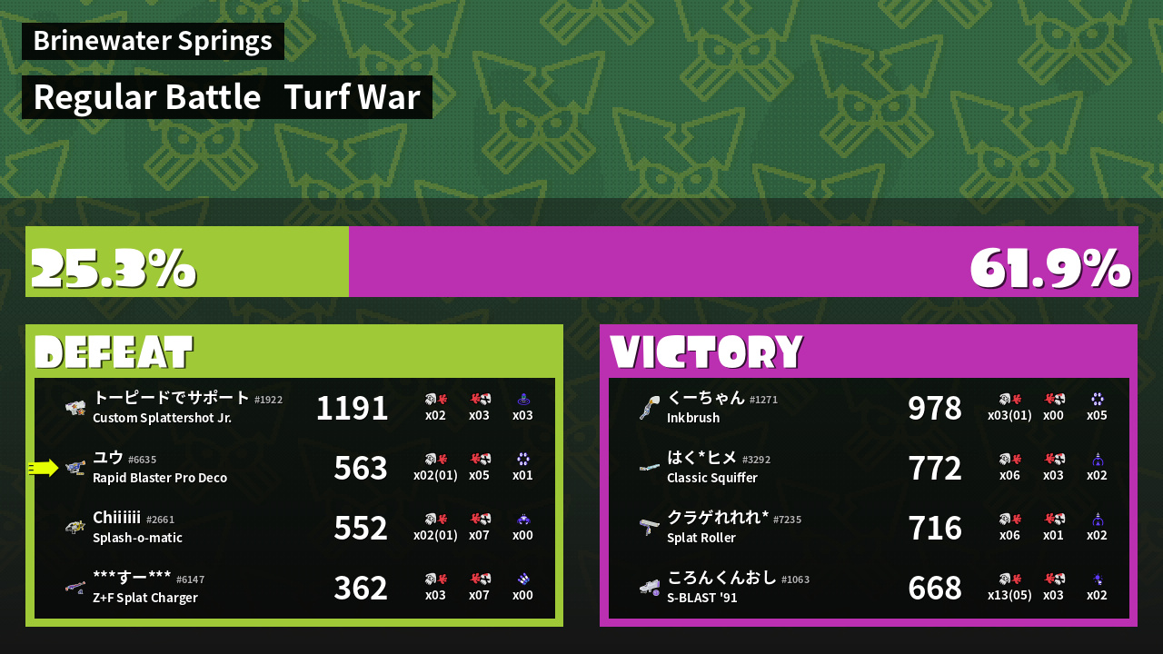 | Medals | #1 Super Jump Spot #1 Splat Assister #1 Killer Wail 5.1 User | ||