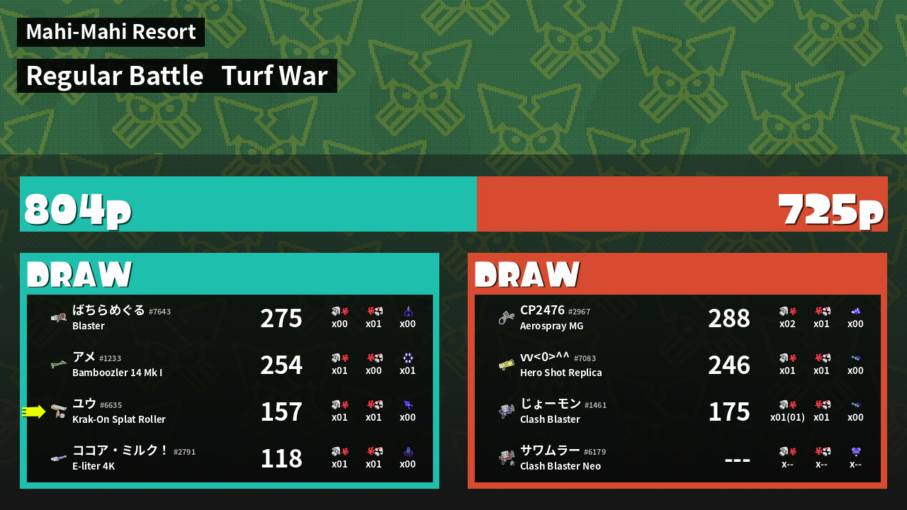 | Mode | Turf War - Regular Battle | ||