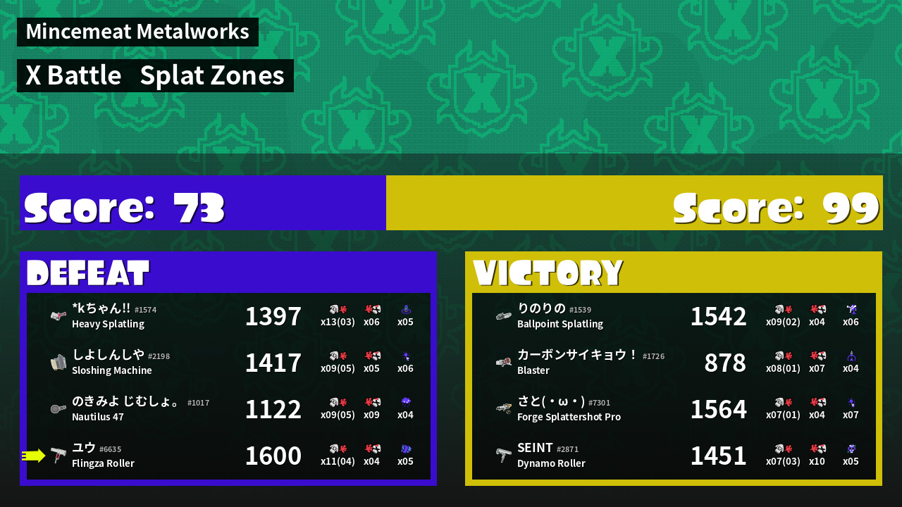 | Weapon | Flingza Roller ( Ink Mine / Tenta Missiles) | ||