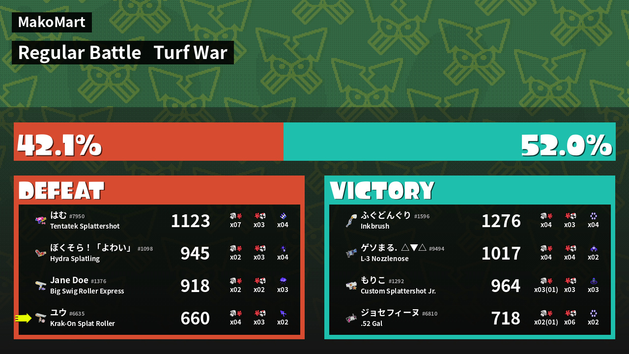 | Mode | Turf War - Regular Battle | ||
