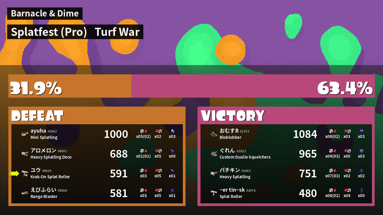 | Mode | Turf War - Splatfest (Pro) | ||